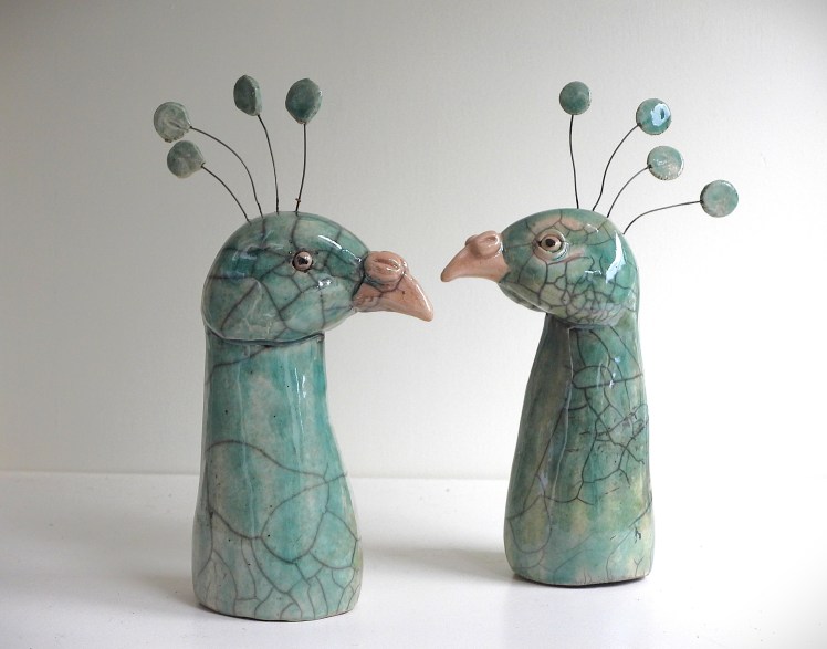 De beelden zijn meestal gemaakt van, soms grove chamotte,  klei en zijn vaak raku gestookt, een oude Japanse stooktechniek, die een niet altijd te voorspellen, interessant, craquelé kan geven. De beelden zijn bedoeld om binnenshuis te plaatsen.